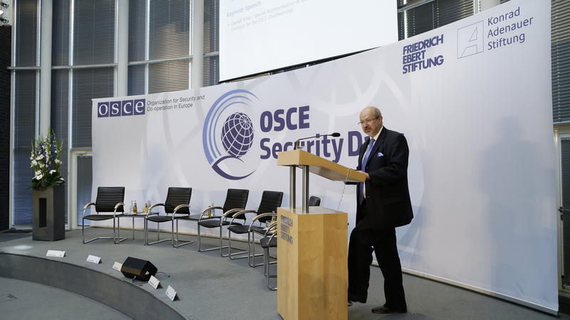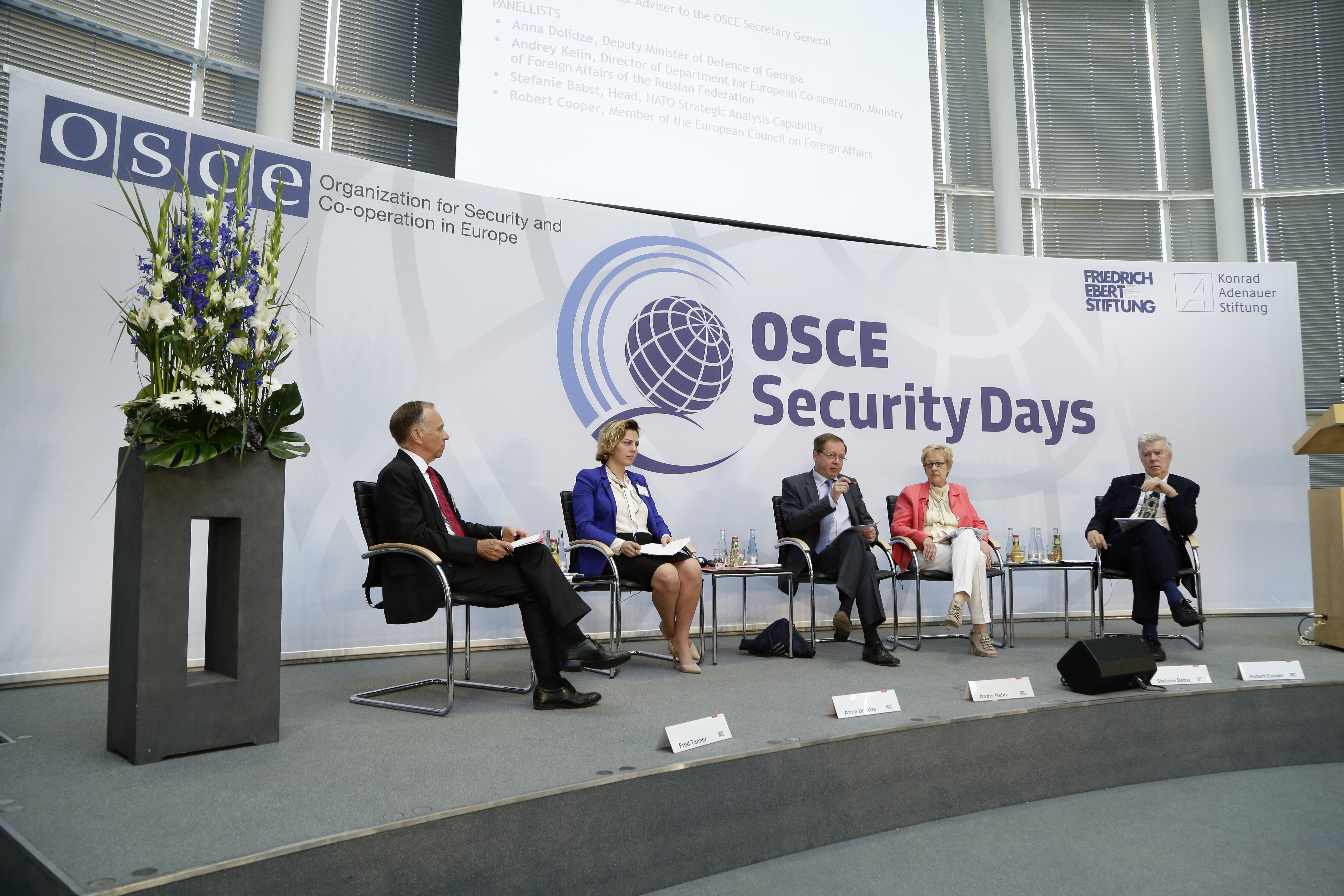 A panel speaks at the first session of the day, "Restoring Stability and Predictability in the Politico-Military Sphere" at Security Days in Berlin, 24 June 2016.