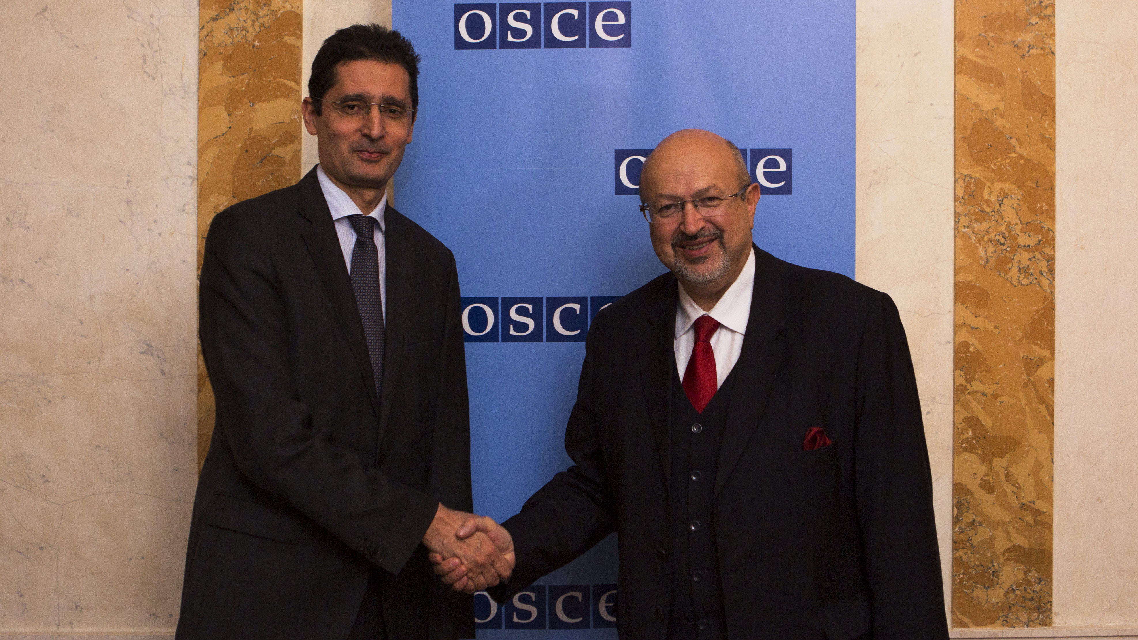 H.E. Lotfi Bouchaara (l), Ambassador of Morocco, with OSCE Secretary General Lamberto Zannier, Vienna, 11 November 2016.