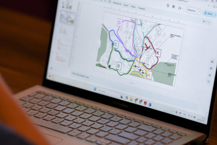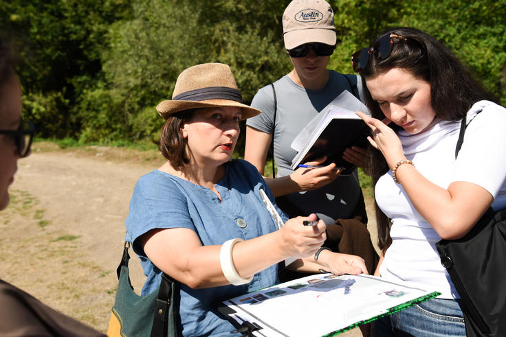 Studentët shqyrtojnë planimetrinë e fshatit Letnicë para se të fillojnë punën e tyre në terren. 19 gusht 2025 (OSBE/Leurina Mehmeti).