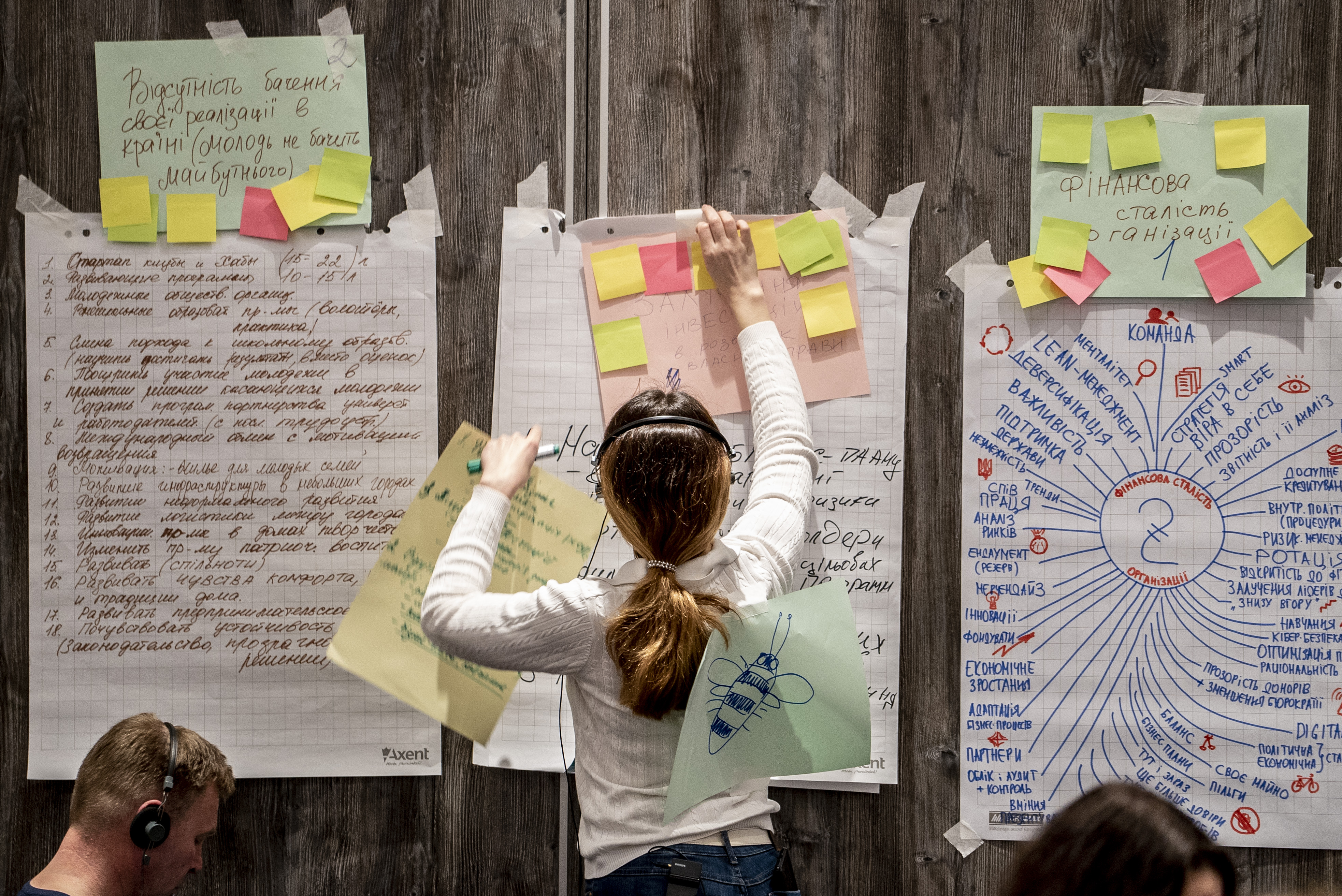Активісти та експерти проводять мозковий штурм для пошуку шляхів зміцнення стійкості та життєздатності організацій громадянського суспільства на заході, організованому Координатором проектів ОБСЄ в Україні, де презентувалася концепція закону про соціальне підприємництво в Україні. м. Київ, 11 квітня 2019 року