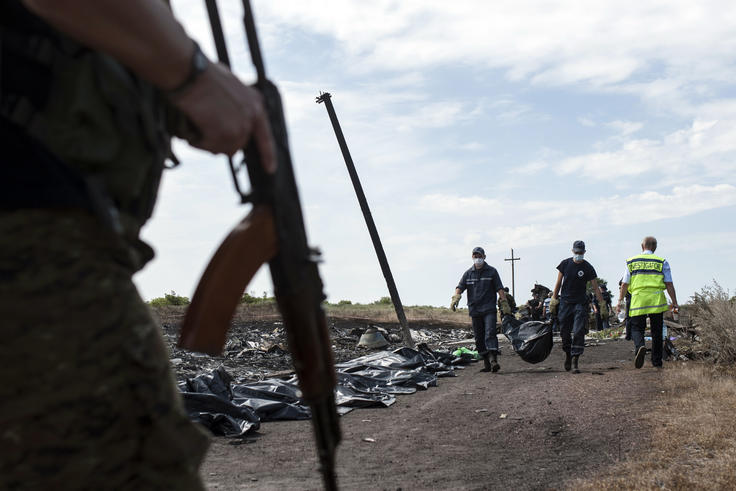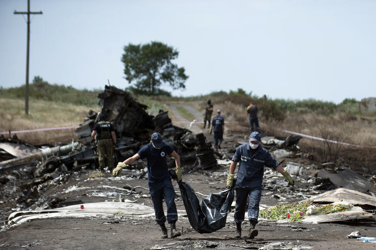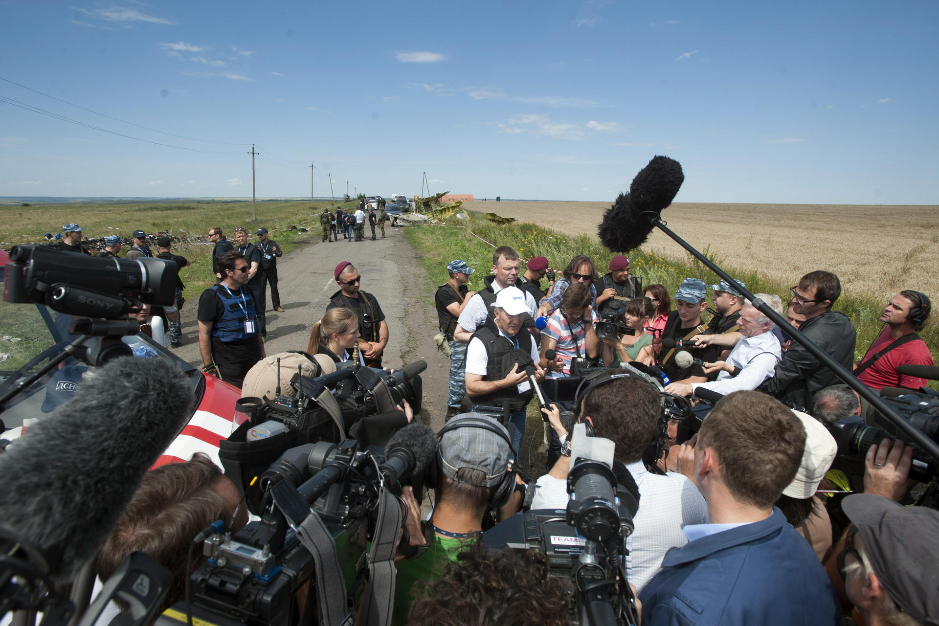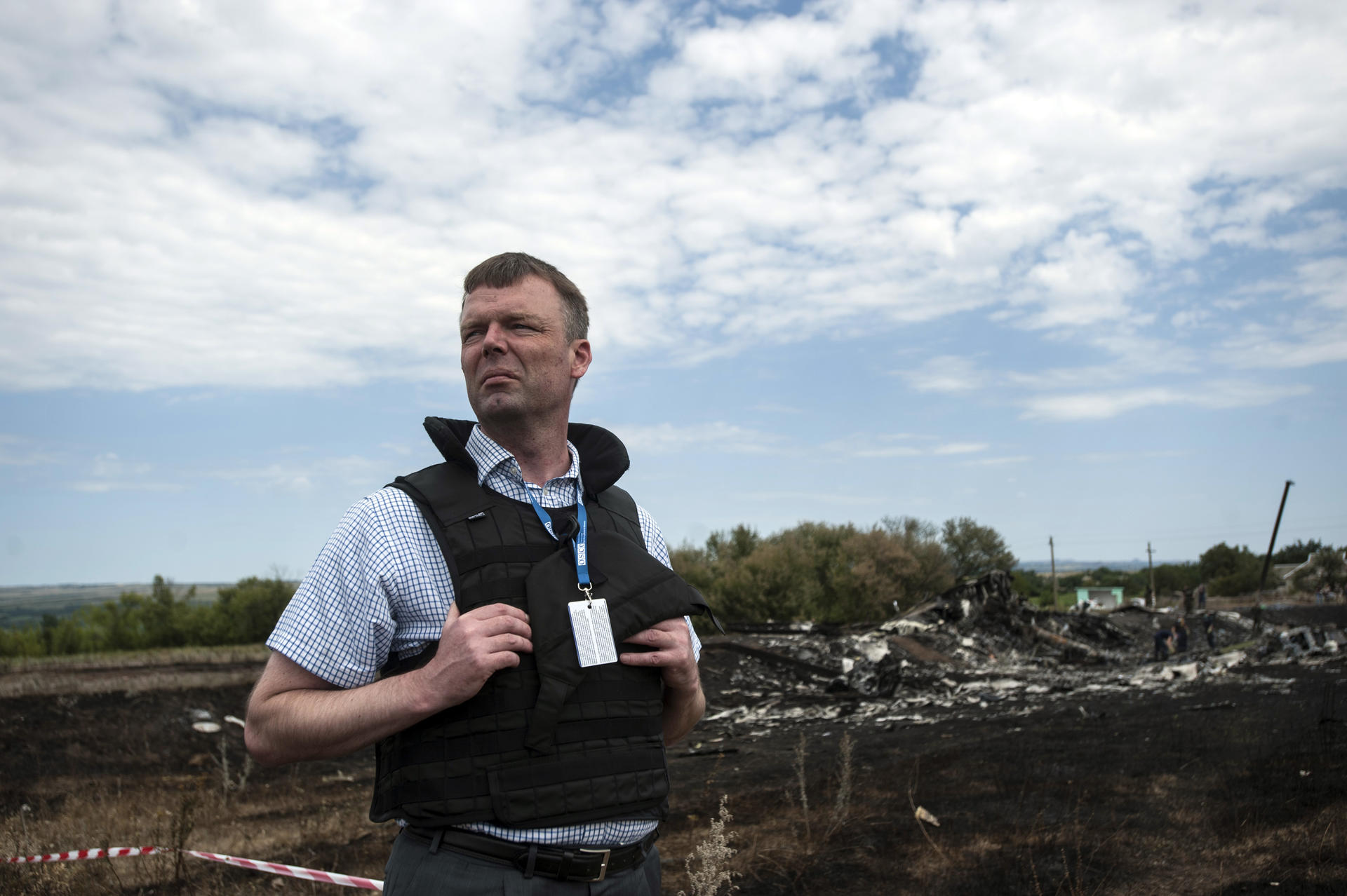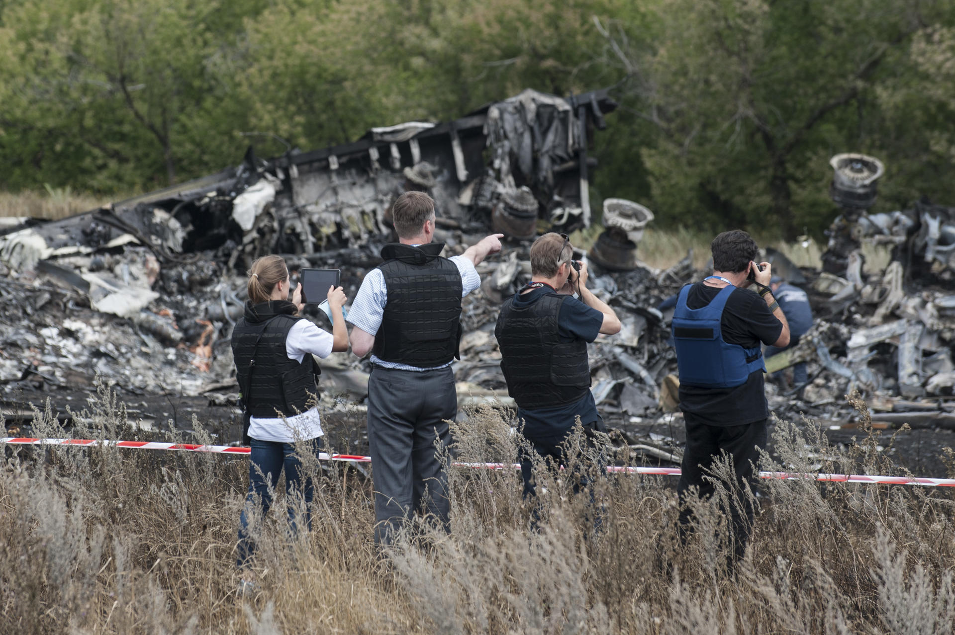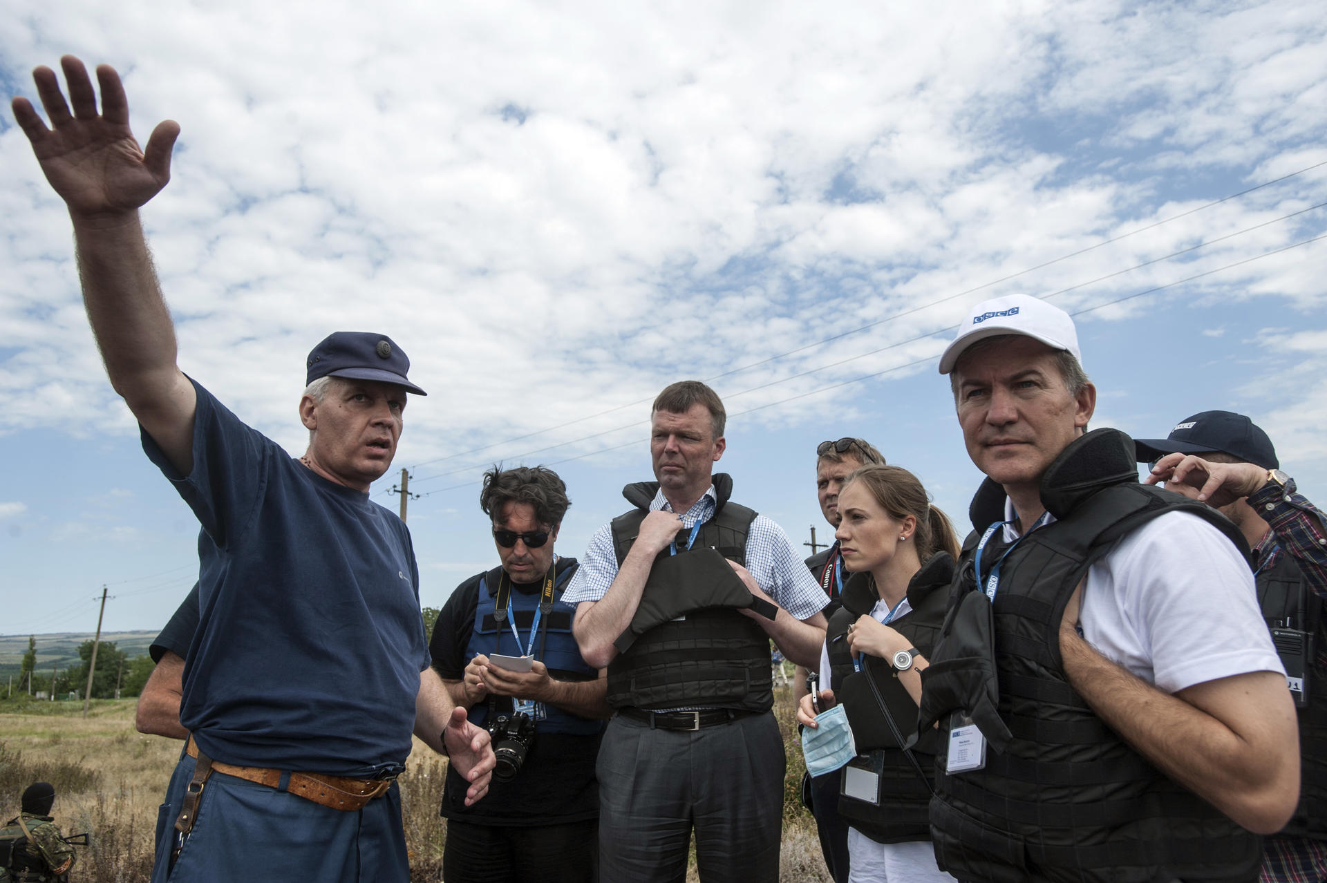 Спостерігачі спеціальної моніторингової місії ОБСЄ в Україні на місці аварії MH17, 20 липня 2014 року.