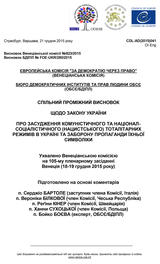 СПІЛЬНИЙ ПРОМІЖНИЙ ВИСНОВОК ЩОДО ЗАКОНУ УКРАЇНИ ПРО ЗАСУДЖЕННЯ КОМУНІСТИЧНОГО ТА НАЦІОНАЛ- СОЦІАЛІСТИЧНОГО (НАЦИСТСЬКОГО) ТОТАЛІТАРНИХ РЕЖИМІВ В УКРАЇНІ ТА ЗАБОРОНУ ПРОПАГАНДИ ЇХНЬОЇ СИМВОЛІКИ