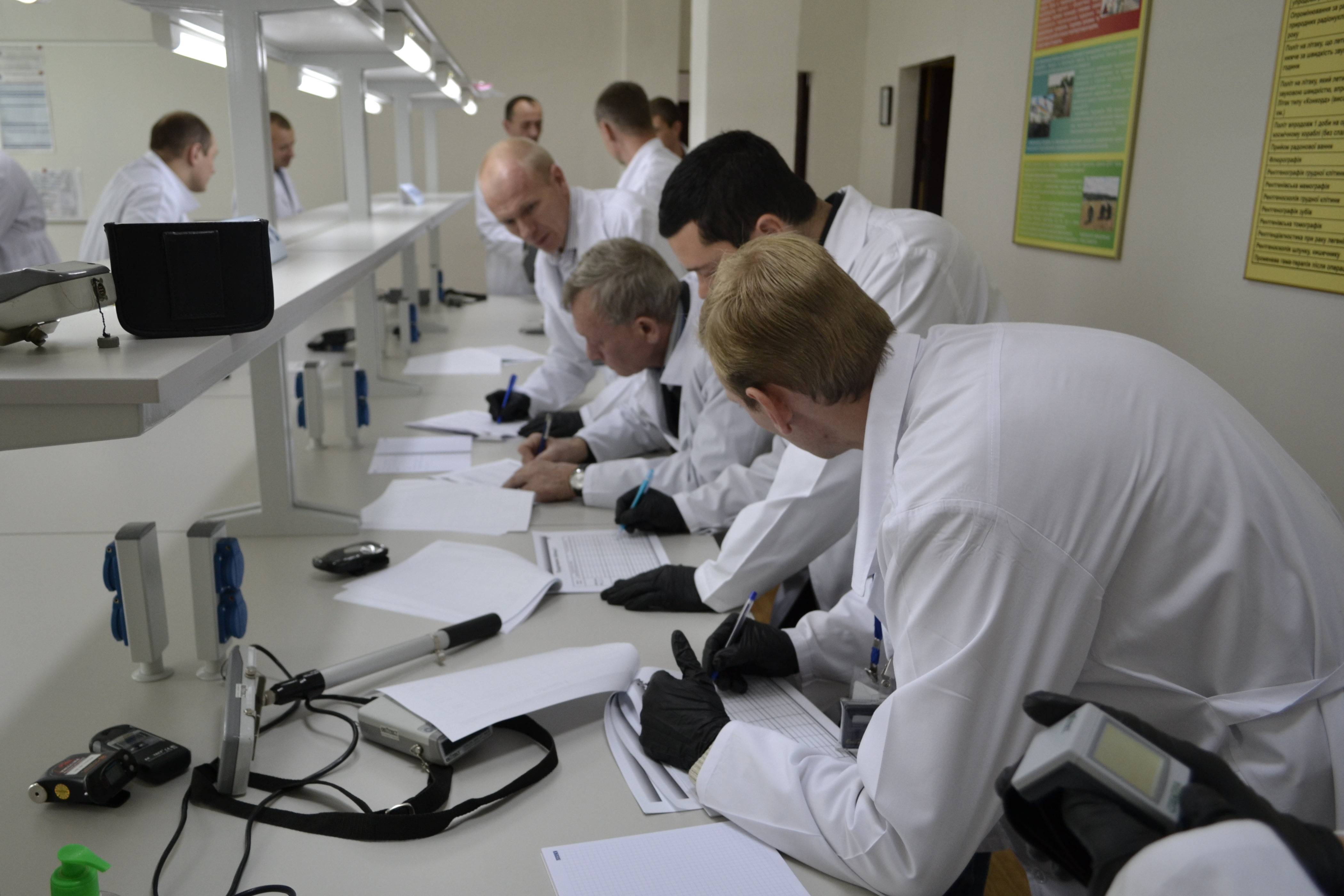 Environmental inspectors conduct laboratory work on measuring ionizing radiation with different devices.