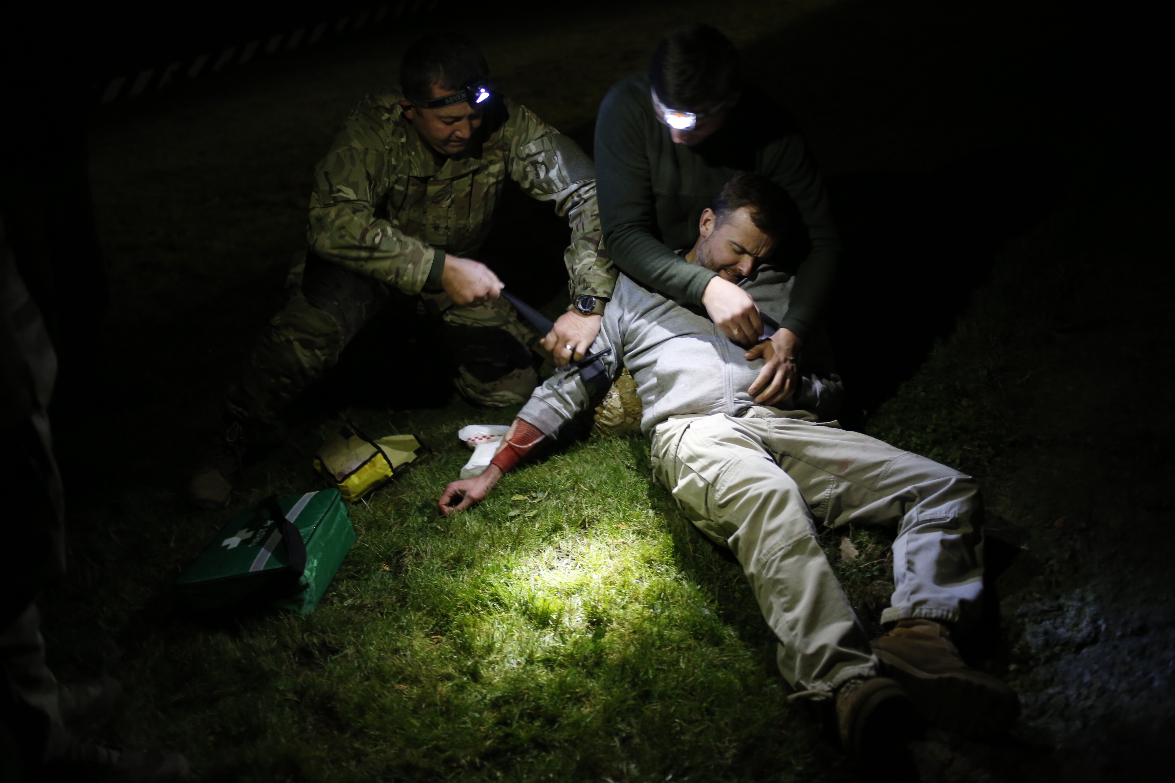 The trainees were challenged to find the wounded in the dark of night, assess the injuries and to provide first aid.