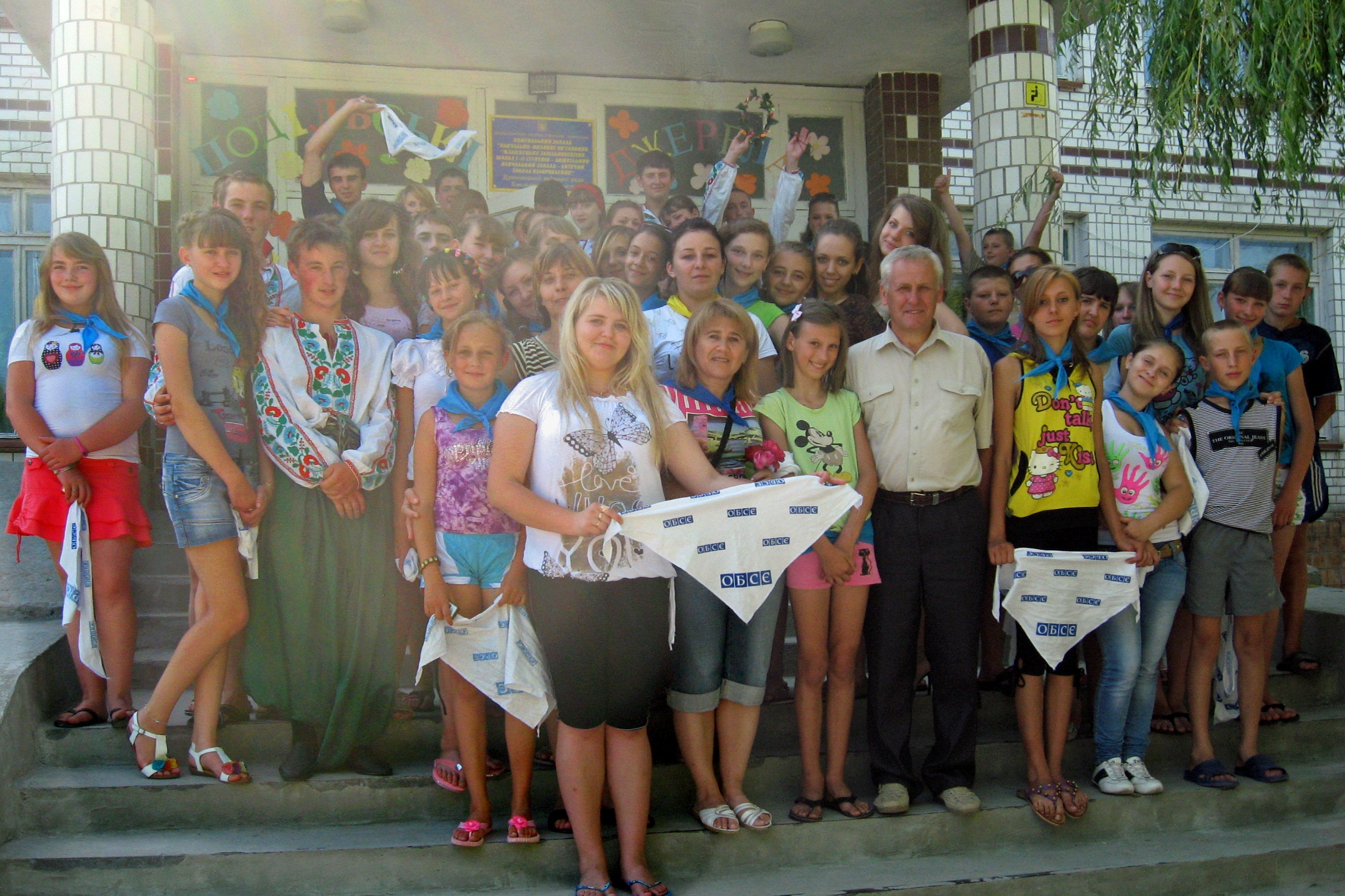 Secondary school children and teachers gather for a group photo after completion of the three-day summer camp supported by OSCE Project Co-ordinator in Ukraine in Khmelnystkyi region, 30 June 2012.